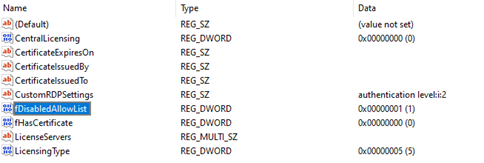 Set-ItemProperty “HKLM:\SOFTWARE\Microsoft\Windows NT\CurrentVersion\Terminal Server\TSAppAllowList” -Name fDisabledAllowList -Value 1
